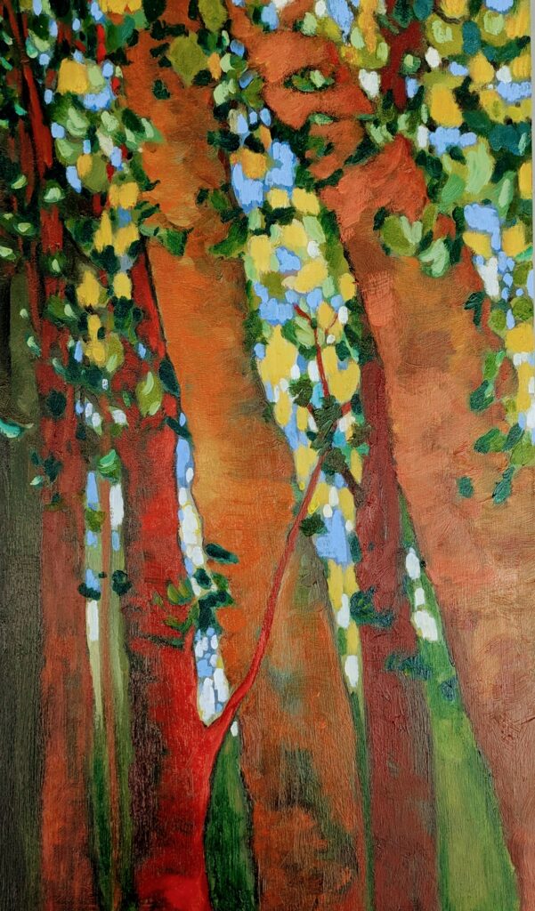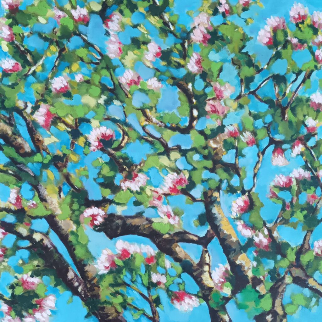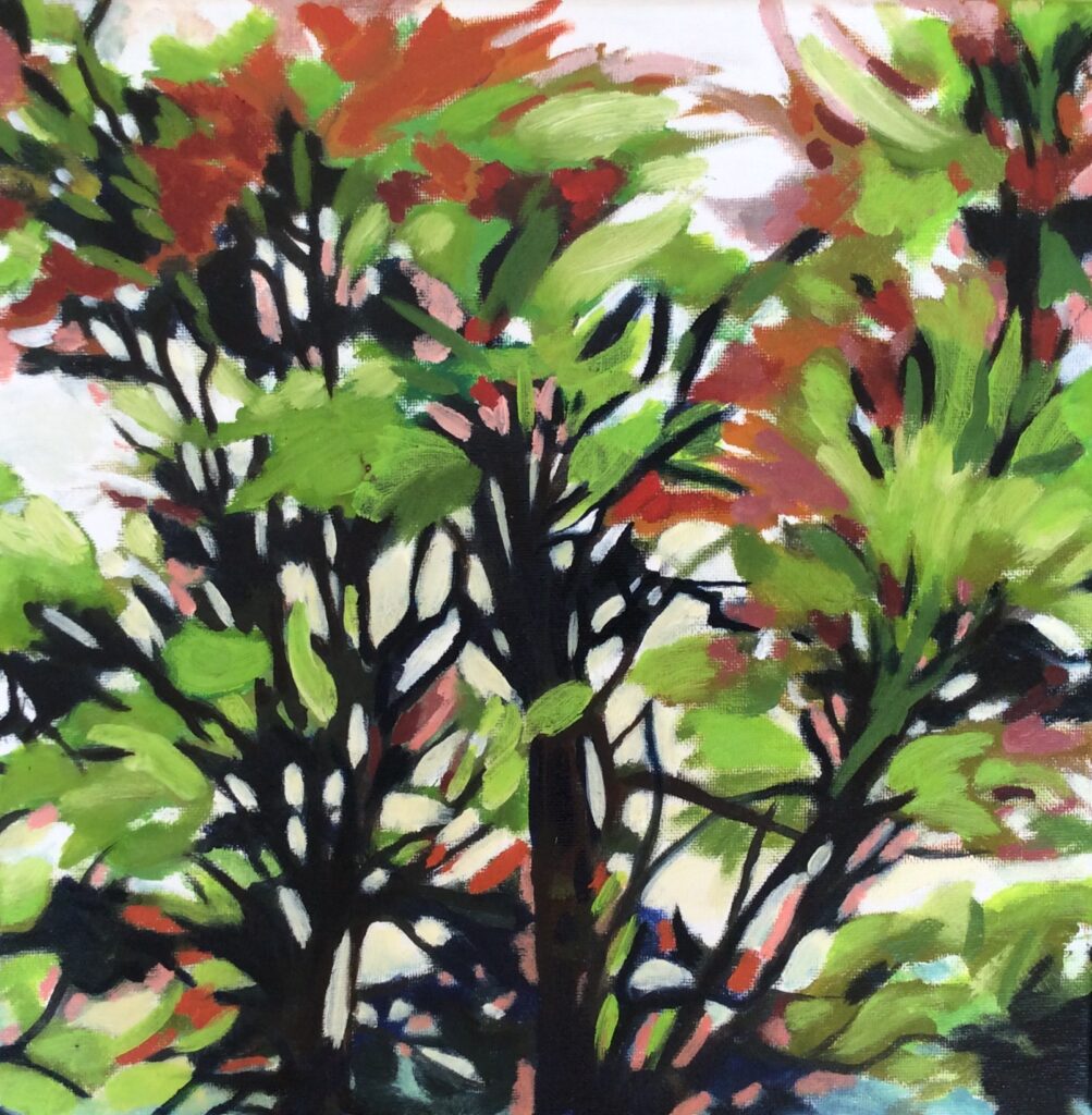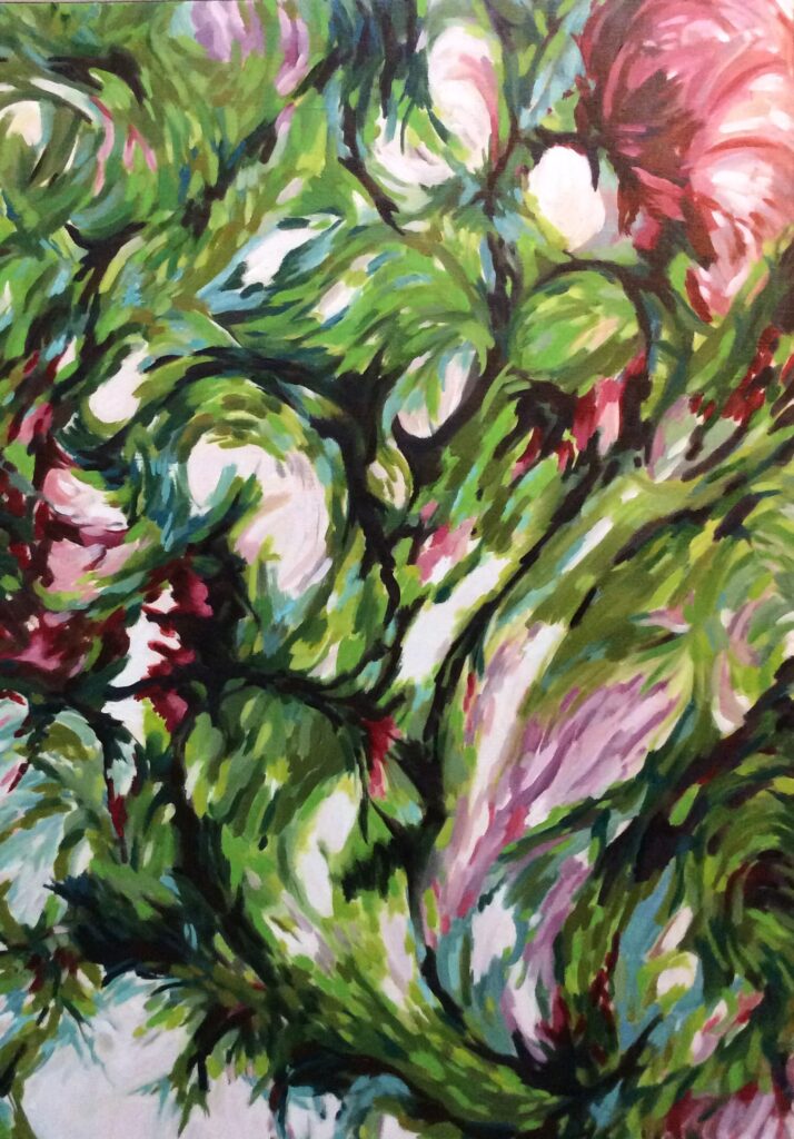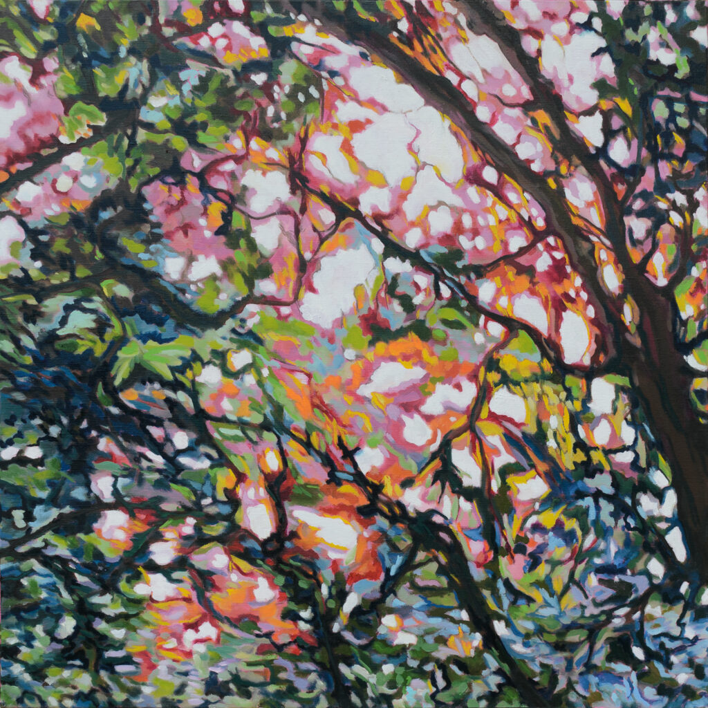 Les ramifications de l’arbre sont tour à tour tortueuses, linéaires, horizontales, verticales. Nues ou feuillues, elles ne sont plus un élément et deviennent un tout.