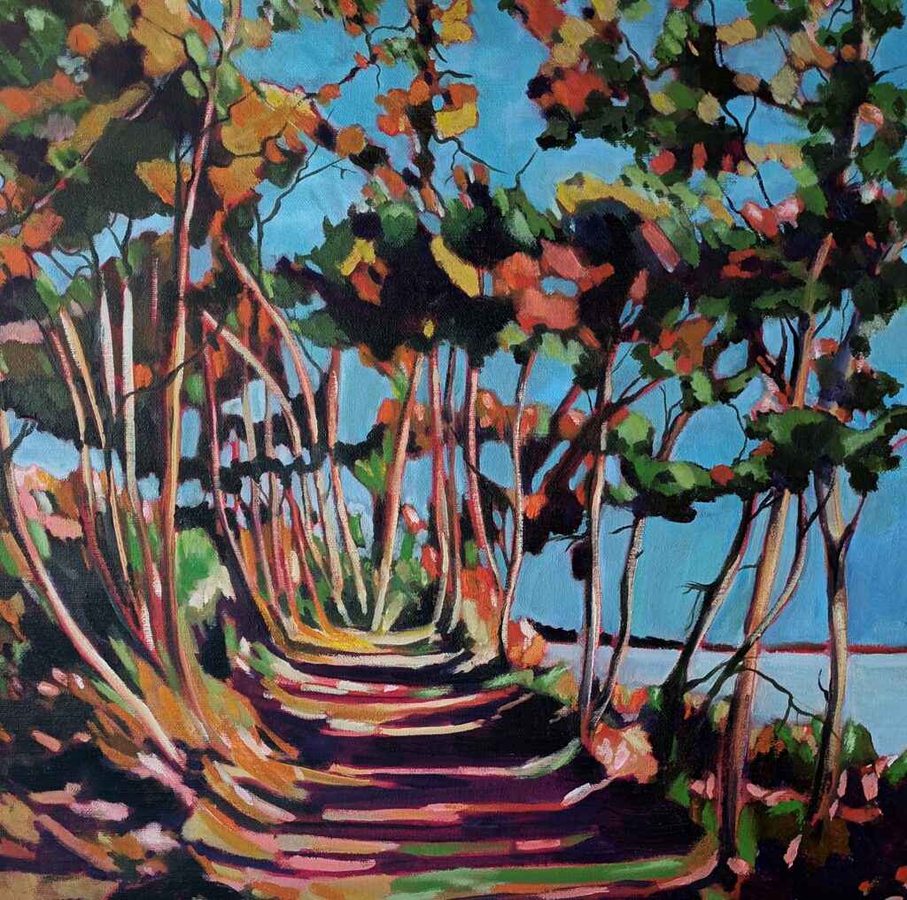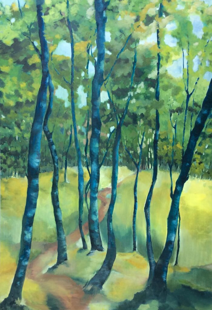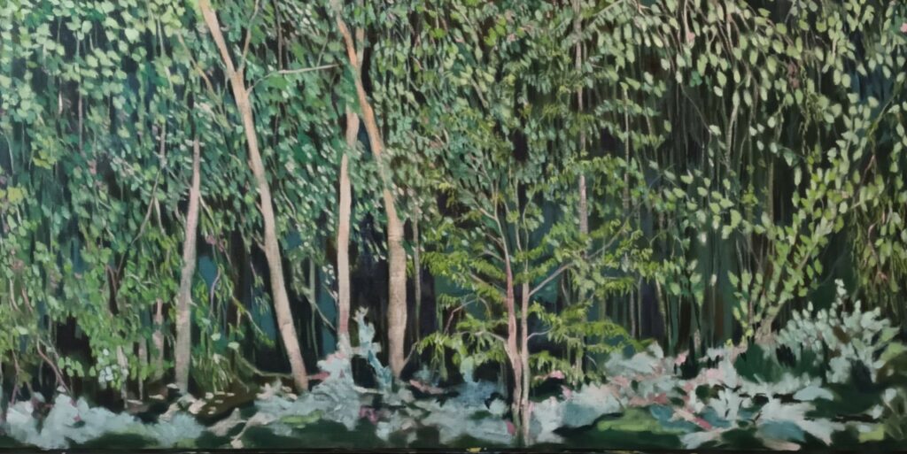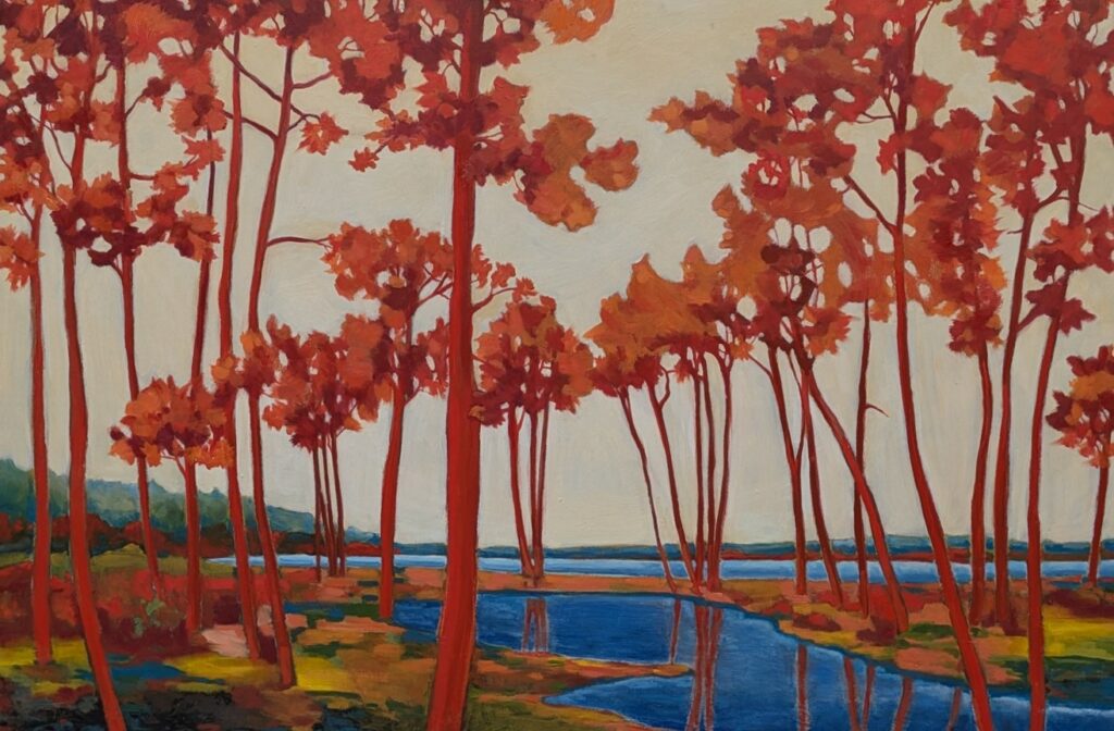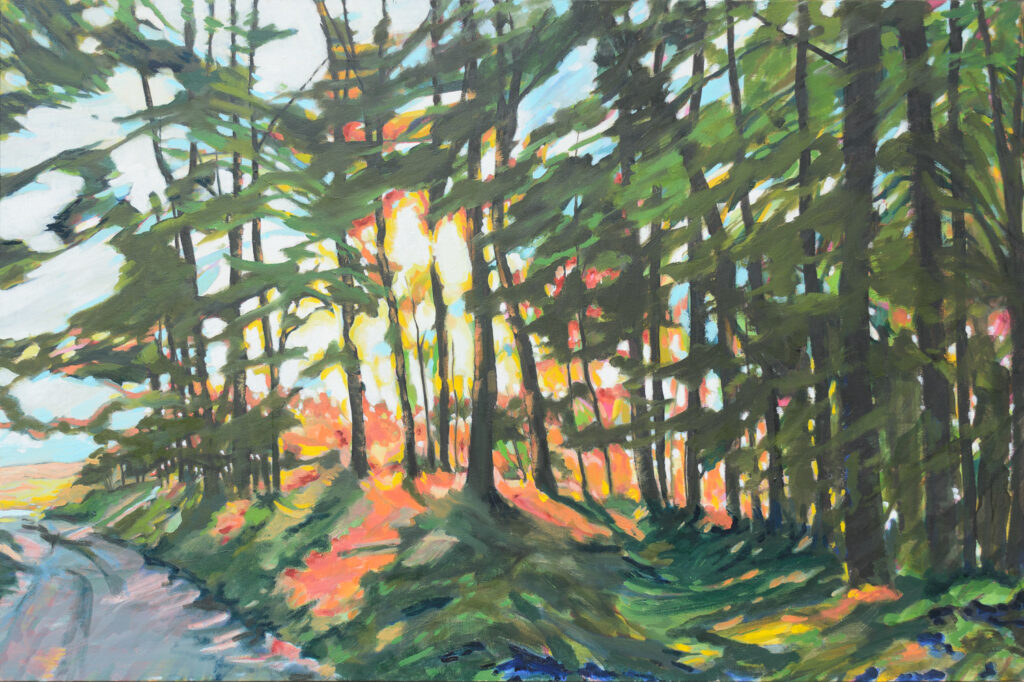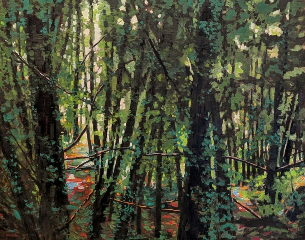 Mon environnement impacte énormément ma création : depuis que je peins, je ne regarde pas la nature, je la scrute, je la décortique. Une lumière qui traverse la forêt, un rayon de soleil qui éclaire la crête d’une vague, je dégaine mon appareil photo et je conserve ces instants volés. Ma photothèque est immense et j’y reviens toujours, comme un motif indispensable pour poursuivre ma route.