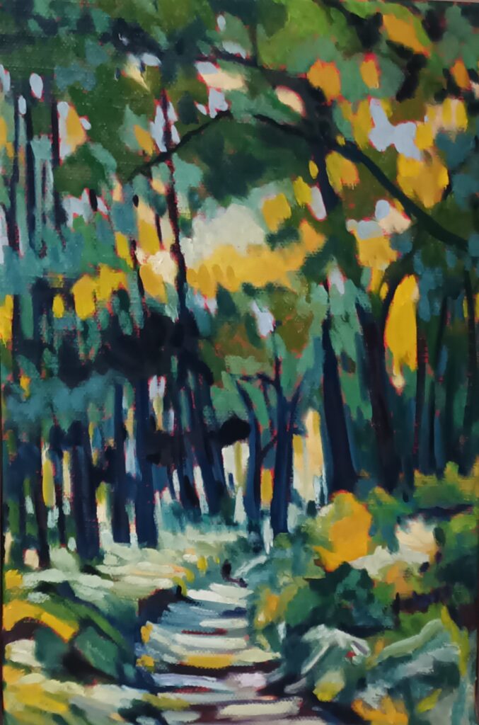 La figuration est une récréation nécessaire, un retour à ce qui me nourrit depuis le début. Parfois, ces œuvres restituent tous les détails visibles, parfois j’en simplifie la représentation, je schématise, je déforme, je propose une palette colorée différente, j’harmonise pour offrir une composition personnelle et cohérente.